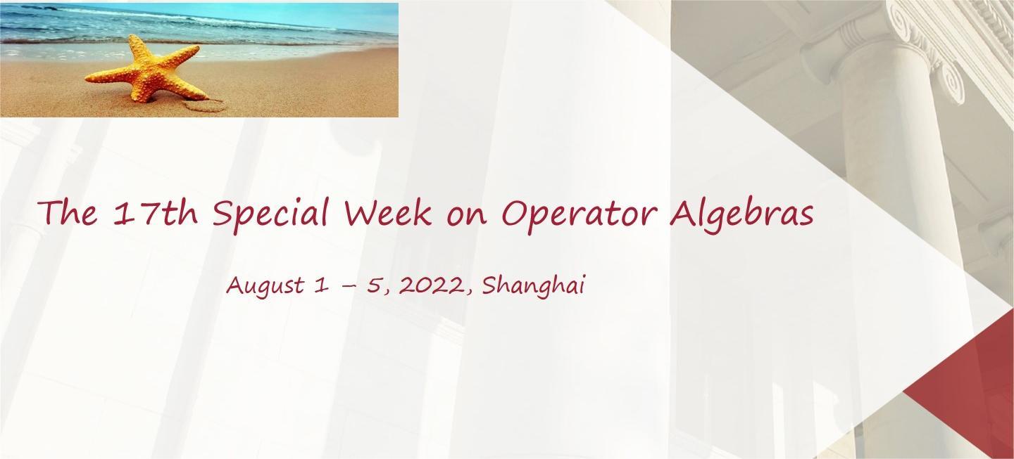 We are pleased to announce that The 17th Special Week on Operator Algebras will be held in the Research Center for Operator Algebras, East China Normal University, Shanghai, China, from August 1 to August 5, 2022.