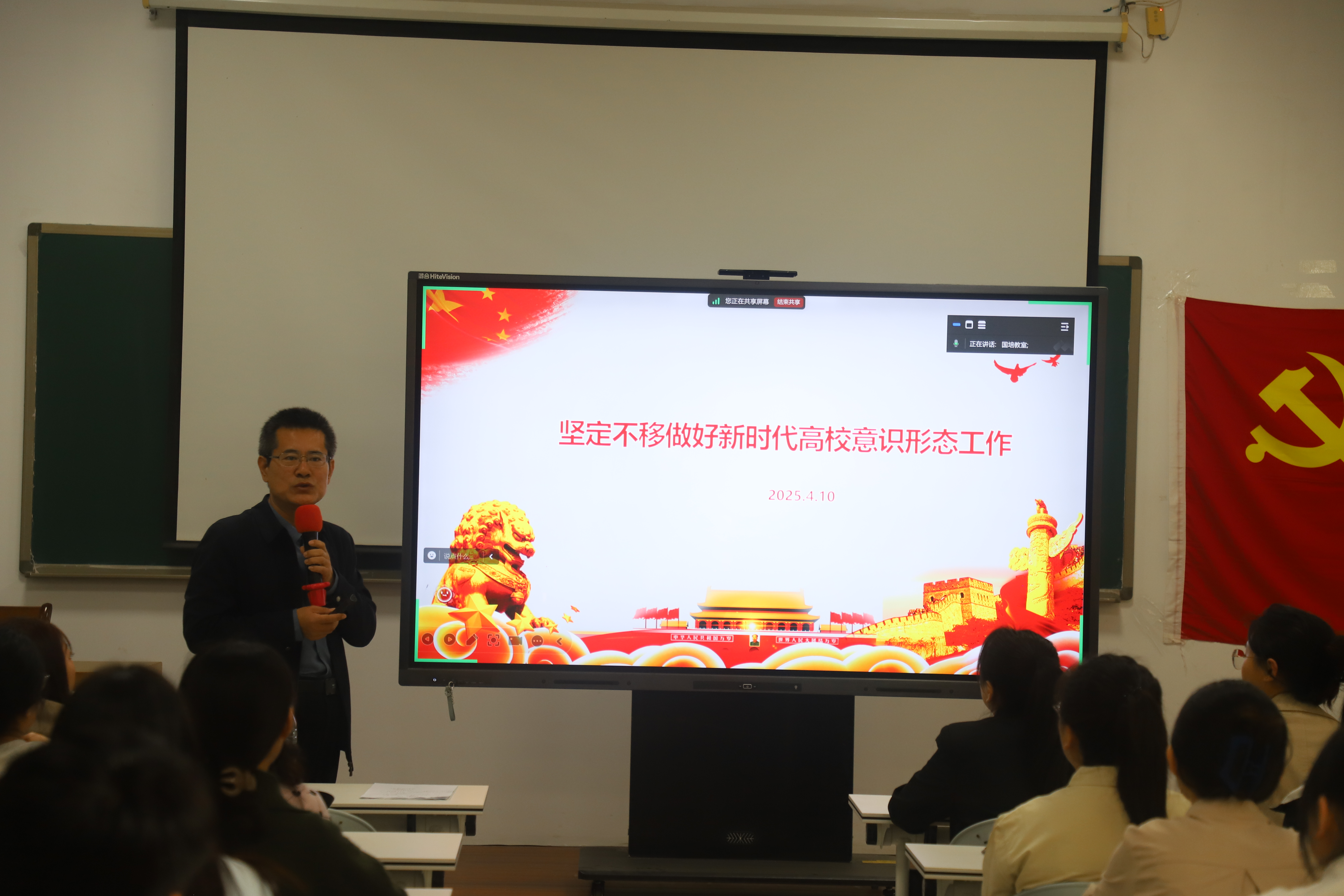 4月10日下午,老王论坛 在老王论坛一楼国培教室举办学生党员大会,老王论坛党委副书记顾连忠以“坚定不移做好新时代高校意识形态工作”为题讲党课,老王论坛全体学生党员和本学期参加党课培训的入党积极分子190余人在线上线下参加了会议。