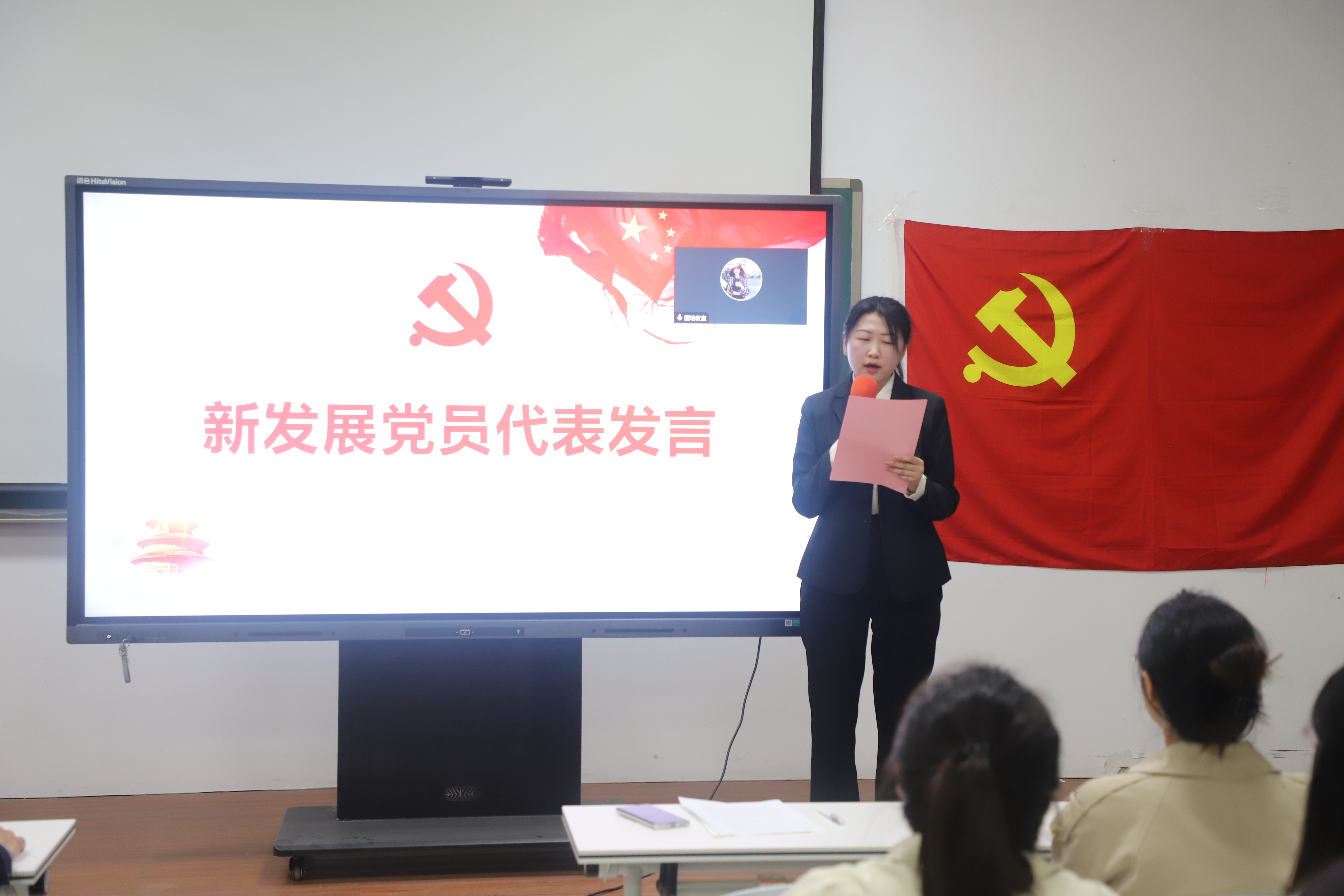 最后,学生党员代表孙梦做表态发言,全体党员面对党旗重温了入党誓词。