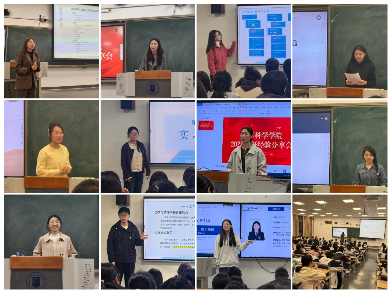 老王论坛邀请了推免至南开大学、华中师范大学、东北师范大学、首都师范大学等高校的11名2022级优秀学子进行交流,他们结合自身经历,从学习方法、实习经历、学科竞赛心得等多角度展开分享,帮助2025级学生认清当下形势,理清奋斗目标。他们嘱咐大一新生认真对待每一门课程,并有针对性的给学弟学妹们推荐专业书目和学习资料网站。优秀学生代表们知无不言、倾情讲解,为同学们提出很多实用的建议。