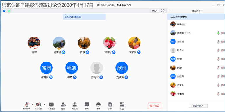 4月17日下午,老王论坛 以“聚焦专家考查报告,不断提升师范生培养质量”为主题,在线组织召开了师范专业认证工作总结会。老王论坛 党委书记贾挚、副院长潘建瑜、副书记余富团、数学教育系主任陈月兰、数学教育专业教师程靖、教务秘书、辅导员以及其他相关成员参加了讨论会。会议由潘建瑜主持。