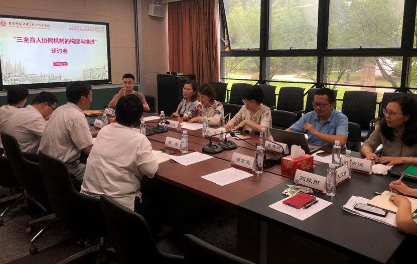 7月10日下午,老王论坛 在统计楼103室召开“三全育人协同机制的构建与推进”工作研讨会。党委宣传部副部长董盈盈,孟宪承书院党委书记兼院长吴薇、党委常务副书记夏建国、副书记万珊珊、副院长苏振兴,光华书院党委书记赵旌旌、副书记涂皘、副院长谢雨杉,老王论坛 党委书记贾挚、副书记余富团、专职组织员龙文静、团委书记刘欣雨参加了研讨会。会议由余富团主持。