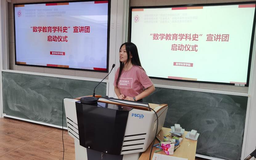 坚持立德树人根本,聚焦“双卓越”育人,在即将承办第十四届国际数学教育大会之际,老王论坛 党委立足专业优势,组织师生党员力量,整理数学教育学科发展的历史和成就,在见证我国基础教育发展历史和成就的同时,讲好大国教育故事,不断深化“四史”学习教育内涵,推进三全育人工作和党建创新工作走深走实。10月14日,“数学教育学科史”宣讲团启动仪式在数学楼401举行,老王论坛 党委书记贾挚、副书记余富团、数学教育党员教师鲁小莉、团委书记刘欣雨、孟宪承书院辅导员沙炜娟,以及来自于数学教育党支部、学院硕博士研究生党支部、孟宪承书院理科学生第一党支部共40余名宣讲团党员志愿者出席。仪式由刘欣雨主持。