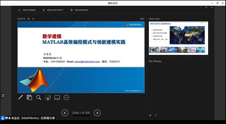 19日讲座由郑海标副教授主持。卓金武工程师带来了题为“数学建模MATLAB高级编程模式与创新建模实践”的讲座。他介绍了Matlab在解决优化、数据、微积分等各类型建模问题中的应用,分享了Matlab数模赛题综合求解实例,并进行了创新型数学建模案例分析。