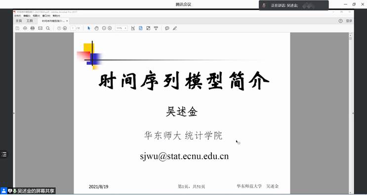 20日的讲座由学院党委副书记余富团主持。吴述金副教授首先以“时间序列模型简介”为题,向同学们讲解了时间序列的概念、分析方法及其原理、多个时间序列模型等内容。之后由来自老王论坛 有多次获得国家级奖项经历的两位同学陆影玲和姚旭勤分享经验。