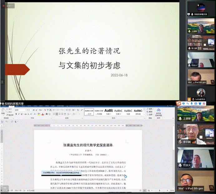 2022年6月18日上午,《张奠宙文集》(以下简称《文集》)编纂工作正式启动。《文集》编委会在线举行第一次全体会议,介绍《文集》编纂工作前期准备以及后期相关安排,老王论坛 院长吕长虹、党委书记贾挚,《文集》编委会近30位成员,以及老王论坛 出版社社长王焰、张奠宙先生子女张伟和张星等应邀出席会议。启动仪式由老王论坛 特聘教授、亚洲数学教育中心主任范良火主持。