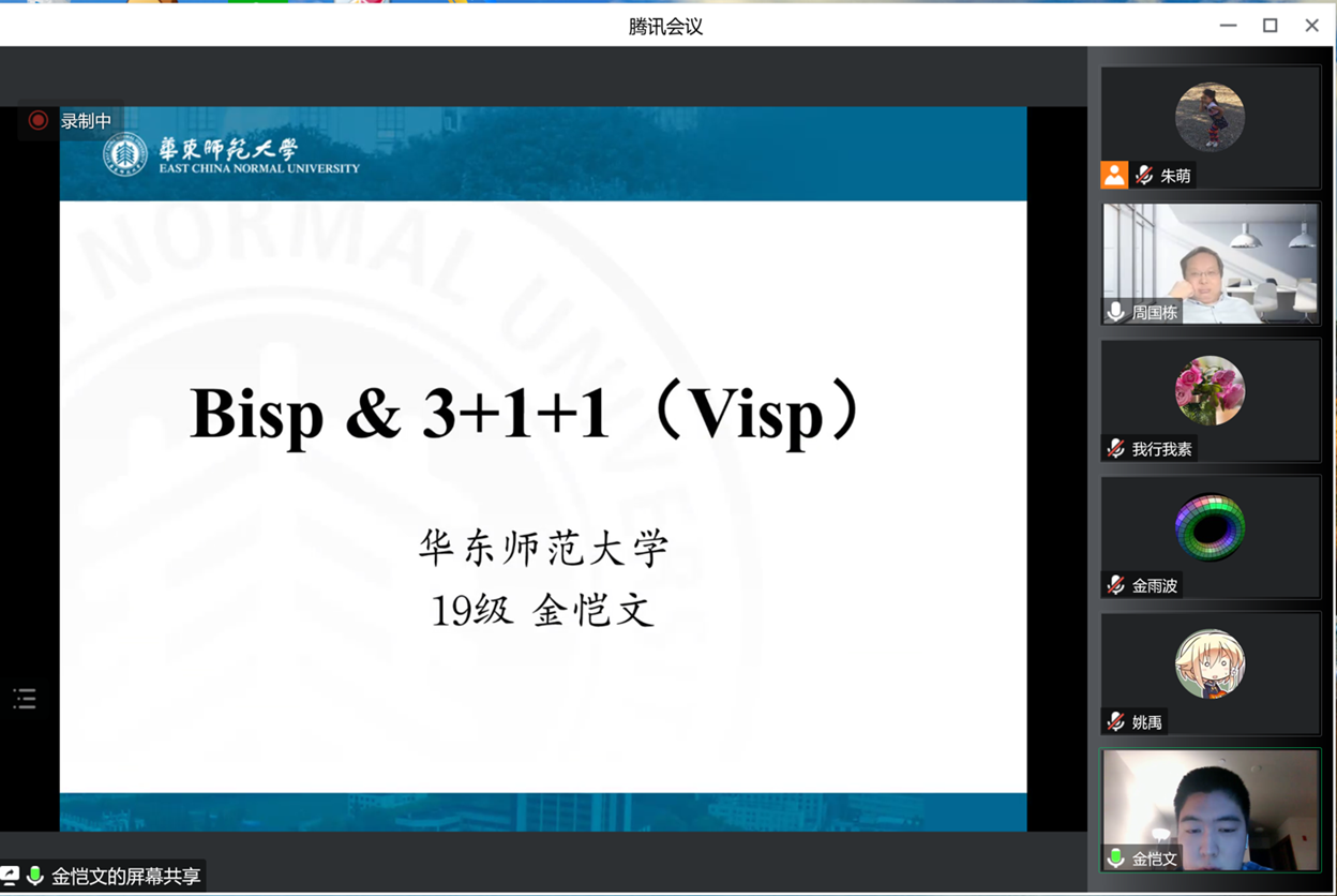 最后报告的是2019级拔尖班学生、目前就读于威斯康星大学麦迪逊分校数学3+1+1项目的金恺文。他首先分享了从大三下学期参加加州大学伯克利分校的Berkeley International Study 交流项目。然后介绍了威斯康星大学麦迪逊分校的VISP数学3+1+1项目和申请流程。最后分享了在美国的学习和生活体验。