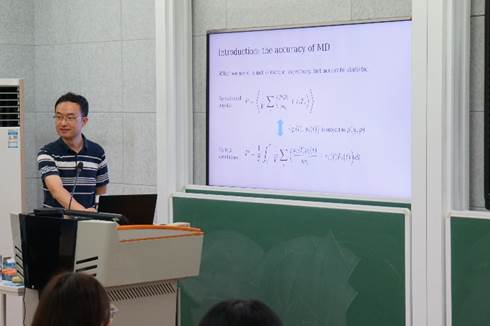 北京应用物理与计算数学研究所的王涵教授作题为“分子动力学模拟和深度学习” 报告。