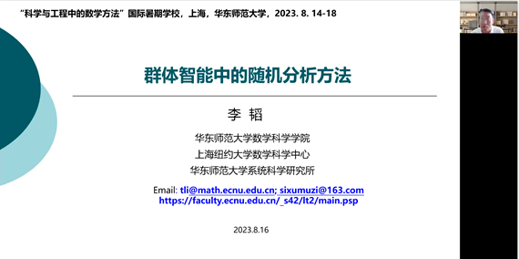 李韬教授作题为“群体智能中的随机分析方法” 报告。