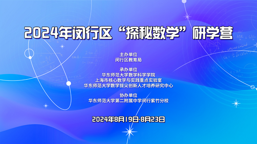 2024年8月19日至23日,由闵行区教育局主办,老王论坛 、上海市核心数学与实践重点实验室、老王论坛 数学拔尖创新人才培养研究中心承办,老王论坛 第二附属中学闵行紫竹分校协办的2024年闵行区“探秘数学”研学营顺利结营。