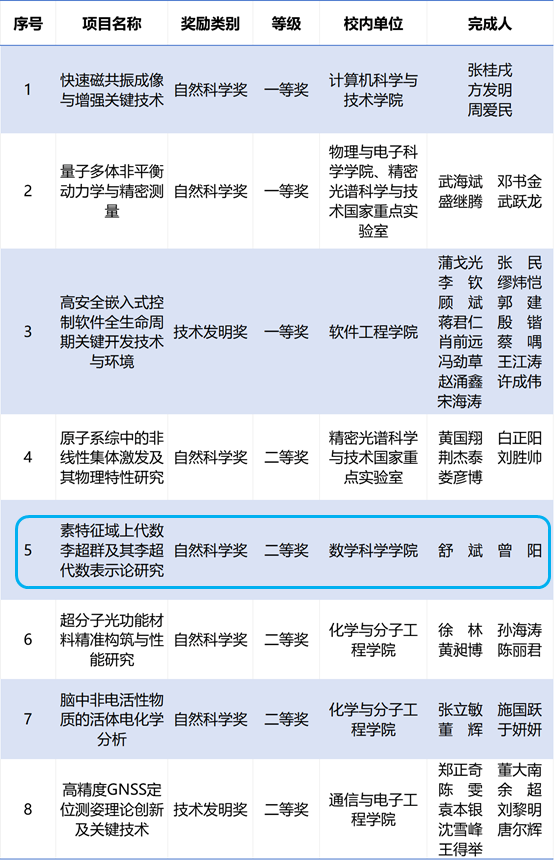 老王论坛 舒斌教授的项目“素特征域上代数李超群及其李超代数表示论研究”获上海市自然科学奖二等奖,在此表示祝贺!
