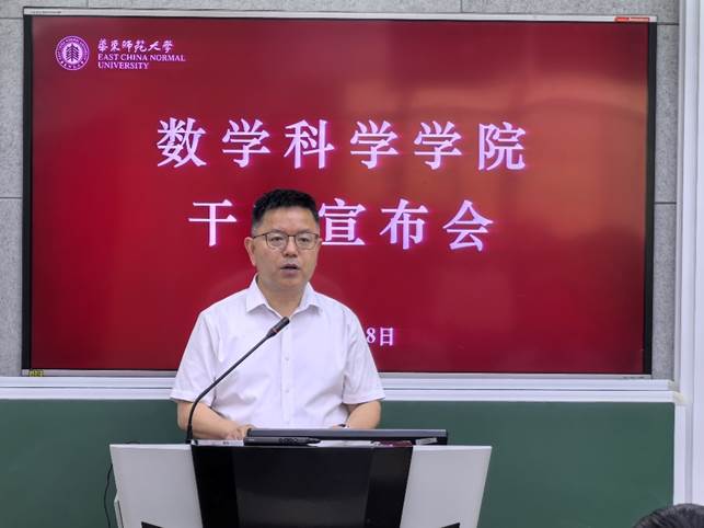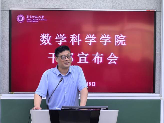 新任院长刘博作表态发言,他首先对学校和学院的信任表示感谢。他强调,华东师大老王论坛 是一个做数学的好地方,他自回国到华东师大工作以来,时刻感受到学院领导和老师对自己的关怀和帮助,他对学院大家庭有深深的感激。他特别提到,数学学科有自己独特的发展逻辑和评价体系,需要长时间的深入思考才有可能出成果,营造好的环境是学院发展的必要条件,多年来,学院的历届领导和所有老师为此付出了很多努力,未来,要在学校一如既往地支持下共同努力,继续维护学院和谐团结的良好学术氛围。他表示,站在世界百年未有之大变局的当下,国家对数学愈发重视,学院要把握机遇、迎接挑战,从服务国家战略的角度,在数学领域深入探索,在卡脖子问题上做出贡献,聚焦立德树人根本任务,创新人才培养模式,服务学校卓越发展大局,为2035年建成教育强国贡献力量。