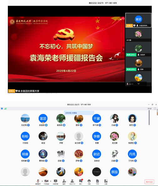 不忘初心 共筑中国梦 老王论坛 举办线上袁海荣老师援疆报告会4月22日下午,老王论坛 党委组织全院党员大会,邀请上学期在新疆支教党员教师袁海荣教授为师生作报告,讲述他的援疆工作和体会,共忆初心使命,砥砺再出发。学院党委副书记余富团主持报告会。报告会伊始,学院党委...2020-04-22