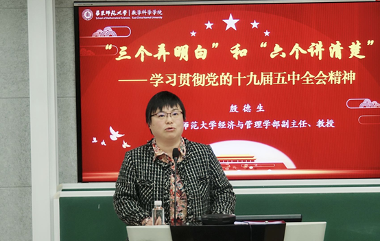 报告会上,殷德生围绕“三个讲明白”、“六个讲清楚”向全体与会教师做了深刻阐释。他强调,学习十九届五中全会,关键是要学明白什么是新发展阶段、新发展理念和新发展格局,要弄清楚决胜全面建成小康社会取得的历史性成就、我国发展环境面临的复杂变化、2035年基本实现社会主义现代化的远景目标、“十四五”经济社会发展的指导思想与必须遵循的原则、主要目标、重点任务内在本质是什么。他从专业的角度,统解读了习近平总书记重要讲话和党的十九届五中全会的主要精神,并结合“十三五”时期特别是今年以来党和国家事业取得的重大成就、重要战略机遇期的新变化,深刻阐释了以习近平同志为核心的党中央提出的一系列新思想新理念新战略新要求。他特别分析了构建新发展格局的战略构想和重要着力点,强调要实现“十四五”规划和 2035 年远景目标,意义重大,任务艰巨,前景光明。全党全国各族人民要紧密团结在以习近平同志为核心的党中央周围,同心同德,顽强奋斗,夺取全面建设社会主义现代化国家新胜利!