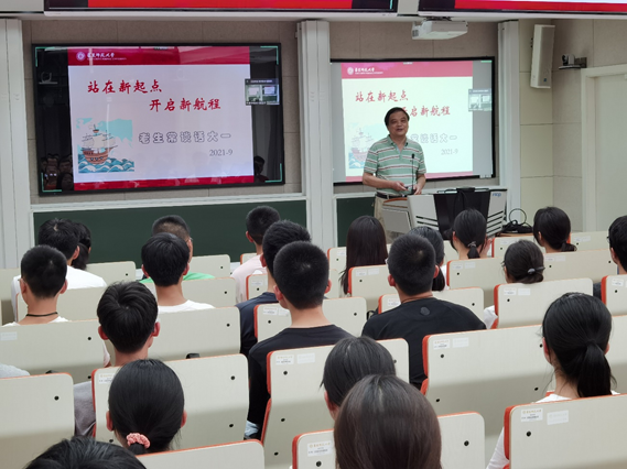 学院资深党员教授、原数学系党委书记羊丹平为全体本科新生做新生发展主题报告