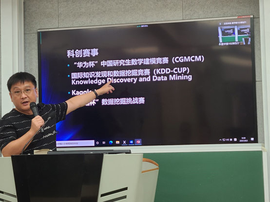 9月2日上午,党员教师、智能数学系主任李韬和数据数学系主任张向韵分别为研究生新生做发展主题报告。李韬为新生做题为“分布式人工智能的数学方法及研究生培养体会”报告,带领新生感受学术的魅力。张向韵则向新生介绍了学院科创活动开展情况,重点介绍了“华为杯”中国研究生数学建模竞赛(CGMCM)、国际知识发现与数据挖掘竞赛(KDD-CUP)等赛事,引领学生逐步规划科创之路。