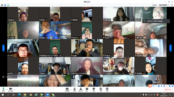 一个主题活动。隔离不隔心,防疫不防爱。党支部、班团学骨干认真学习了“战疫必胜,青春有我”主题活动倡议书,纷纷组织支部或班级成员开展活动。有声音频录制已经启动,主题班会上辅导员与学生共话青春抗疫,同学们互相支招学业、就业等问题,疫霾在悄悄被阳光所驱散。