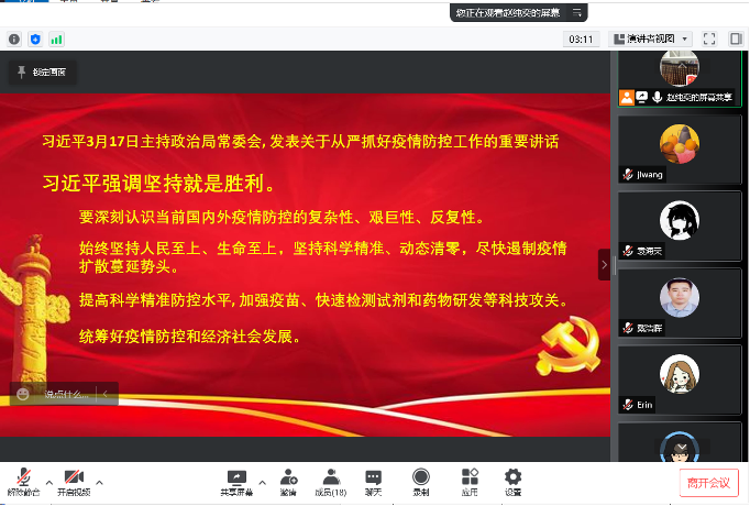 4月9日晚,老王论坛 应用数学党支部在线举行“学习抗疫精神,共悟初心使命”组织生活会,支部书记赵纯奕主持。