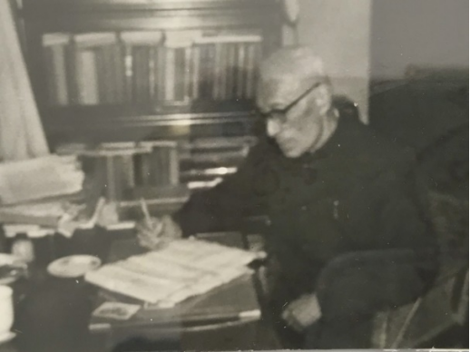 我与先生也真是有缘,在校内见不到,但在校外却又紧密得很:先生工作的高教局与我家所在的里弄只有一墙之隔,每当校系有文件急需给先生时,大都会托我回家时顺手带给先生。每次送交时都能见到先生慈祥的笑容、关切的致谢。不久高教局在院中造了一个新办公楼,与我家只有一墙之隔。当然,先生仍在原大楼办公。