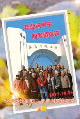 饭后,我们在文史楼前合影留念;李绍芬把背景换成了校门口,更是意味深长……;为大家便于相认,在合影照片上标上了各人的名字,题写了“毕业满甲子,同学情更深”的标题。