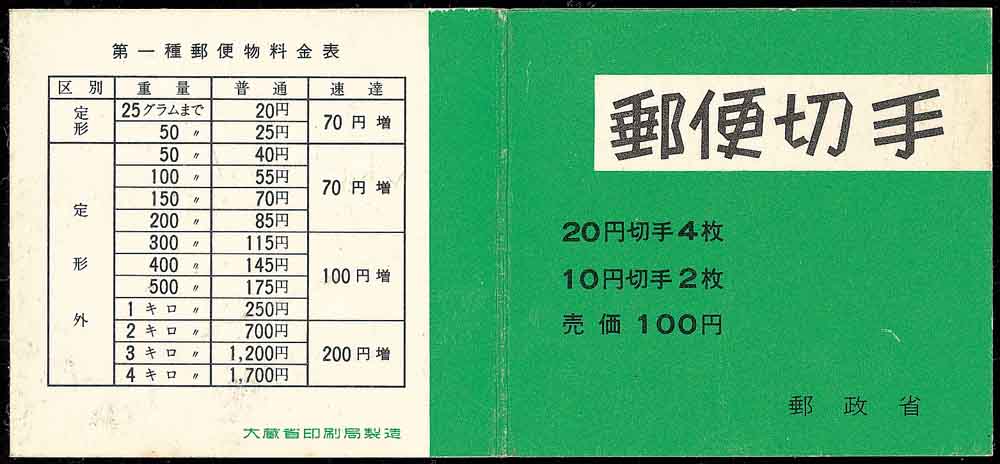 在出现货币的同时,每一种商品或者服务也都有它的价值,这种价值通过数字来表示它的价格。图4是德国商品广告邮资封,它标明面包,糖果的价格是9.95欧元(€)。图5这枚中国邮票的面值是1.60元, 图6标明美国此项小本票的出售价格为6.60美元($)。图7是日本小本票,它除了在小本票的封面(图7右面)上标明价格为100日元外,在小本票的封底(图7左面)还罗列出日本邮政各项服务应付的邮资。