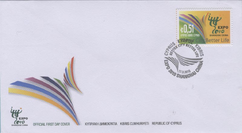 图 44(塞浦路斯世博纪念邮票、首日封,2010-3-17)