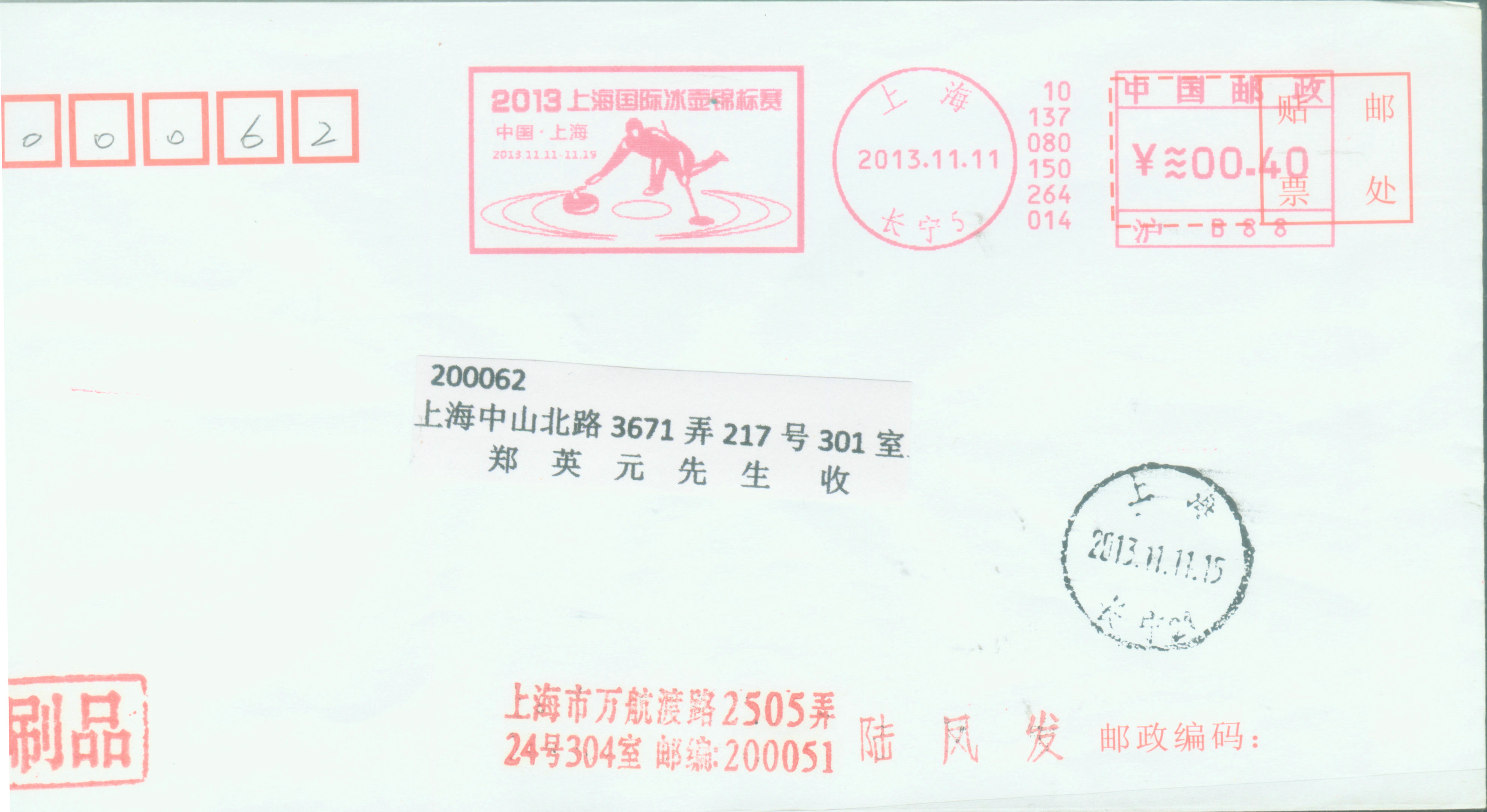中国于2002年加入世界冰壶联合会。图30是2013年在上海举办的国际冰壶锦标赛(邮资标签)。