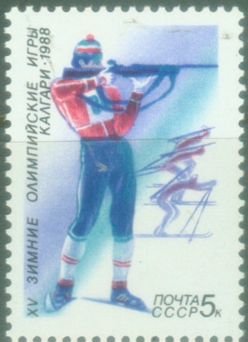 图39-41是奥地利和苏联分别在1964年,1984年和1988年为冬奥会发行的冬季两项邮票。