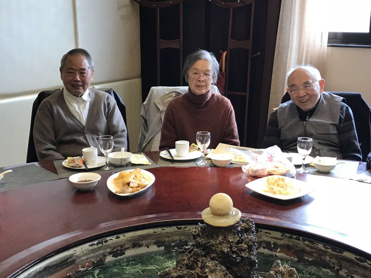 2018年12月6日中午,一群老同事老朋友聚集在一起举行午餐会,大家愉快畅谈、交流,其乐融融。尽管其中大部分离开数学系几十年,但对数学系仍然怀有难忘的情结。所以一声召集令,不管路途遥远,天寒风雨,大家都踊跃参加。先看一看我们的集体照。。