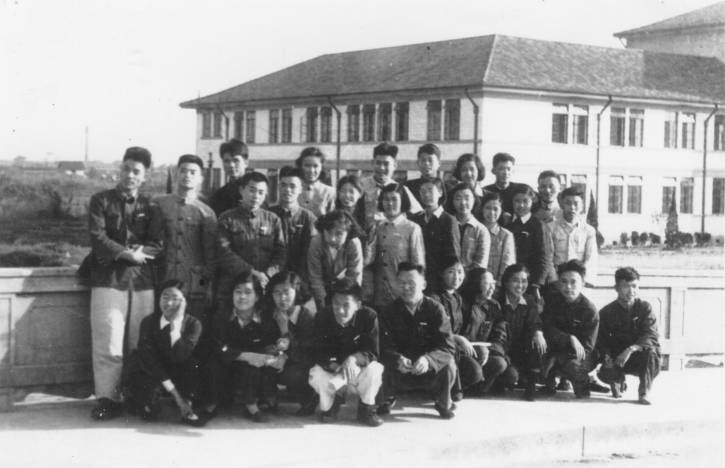 3. 第三年(1953-1954学年)数学系从华东师大分部搬回中山北路校本部。这时数学系教师增加到26位(教授7位,副教授5位,讲师3位,助教11位),政工干部1位,工友1位,学生约350位左右(本科一、二、三年级,专科一、二年级,数学分析研究生班一年级)。数学系办公室在群贤堂后面三排平房的第3排最东面的两个大间。学生上课在现在的化学馆后面临时撘建的草房教室里,学生住宿在第2、3学生宿舍。
