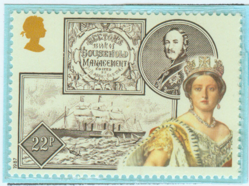 图11(右):纪念维多利亚女王登基150周年邮票,右上为阿尔伯特亲王(英国,1987)