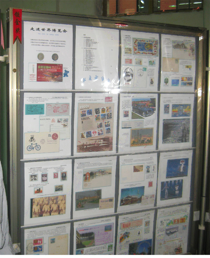 2008年夏天萌发了想收集世博会的邮品,以便了解世博150多年的历史,如有可能也可以借此机会与大家共享世博。经过一年的努力,通过国内外各种渠道, 到2009年夏天,我已经收集到与世博相关的邮品(包括:邮品、明信片、实寄信封、邮戳等)5-6百件。 正好这年上海市要在国庆节举办“庆祝国庆60周年暨迎接上海世博会”的竞赛性综合集邮展览(图1)。于是我把我的邮品组成一部取名为《走进世界博览会》的邮集, 介绍150多年的世博会历史和上海为筹办世博会所做的努力。我的邮集在竞赛展出中获得镀金奖(图2),2009年10月9日在市里的颁奖大会上我上主席台领取奖状, 并被挂上奖牌(图3)。现在,我计划写几篇短文配上相关邮品向大家介绍世博会的历史,几届大型世博会的背景与风采,以及上海世博会概况,请大家批评指正。